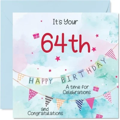 64th Birthday Cards for Men Party Bunting Happy Card 64 Year Old Man Neighbour Uncle Husband Dad, 145mm Bday Greeting