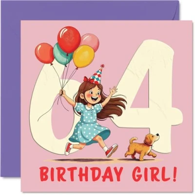 64th Birthday Cards for Women Balloon Girl Happy Card 64 Year Old Woman Wife Friend Cousin Nan, 145mm Bday Greeting