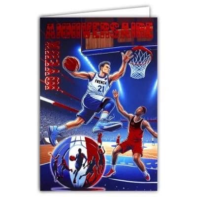 65 1422 Happy Birthday Basketball Card Glossy Red with Envelope 12 x 17.5 cm for Sporty Player Who Marks a Championship Supporters Team Basket Made in France
