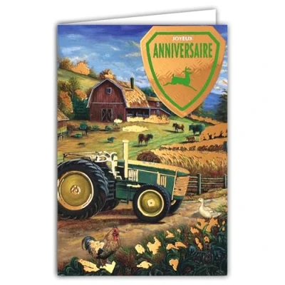 65 1430 Happy Birthday Card Old Tractor Green and Bronze Glossy with White Envelope Format 12 x 17.5 cm Retro Vintage Mechanical for Farmer Breeder Made in France