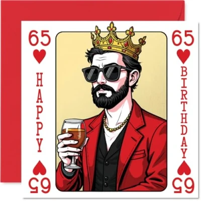 65th Birthday Cards for Men King Playing Card Happy 65 Year Old Man Cousin Friend Neighbour Grandad, 145mm Bday Greeting