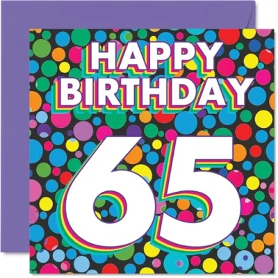 65th Birthday Cards for Women Men Funky Rainbow Dots Happy Card 65 Year Old Woman Man Nanny Brother Friend Uncle, 145mm Bday Greeting