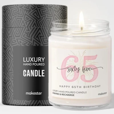 65th Birthday Gifts (1960) Luxury Soy Wax Vanilla, Jasmine, Sugared Almond Makester