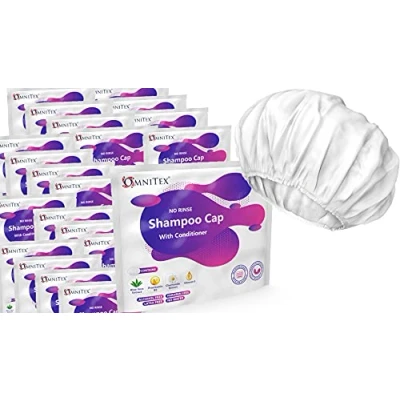 65x Bulk Omnitex Premium Rinse Free Shampoo Cap Microwaveable with Conditioner & Vitamins Nourish Protect Herbal Extracts Barrier Cream No Water, Parabens, Latex Free, Alcohol