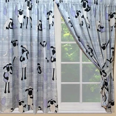 Shaun The Sheep 'Sleep' - 100% Officially Licensed Merchandise Set Includes : 1 Pair Of Unlined Curtains (66" Wide x 54" Drop) & Tie Backs (24") (approx.) Material: 48% Cotton / 52% Polyester Machine Washable Pictures For Illustration Purposes Only, Colours May Vary Slightly