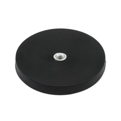 66mm dia x 8mm high White Rubber Coated POS Magnets c/w M6 Boss Thread (Flush deep) 20kg pull
