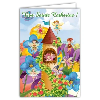 67 1077 B Saint Catherine Little Girl Child's Vive Card with White Envelope Tinker Bell and Friends Fairy Magic Castle 12 x 17.5 cm Interior for Writing