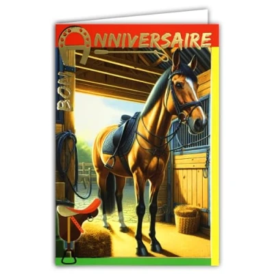 67 1278 Happy Birthday Card Lucky Horseshoe in Shiny Gold and Envelope 12 x 17.5 cm Horse Riding Club Equestrian Stallion Mare Foal Pony Stable Box Saddle Whip