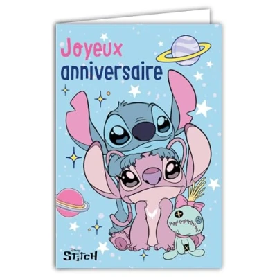 BIRTHDAY CARD: Festive card featuring Angel in a colourful illustration with the message "Happy Birthday" on a blue background dotted with stars and planets to celebrate that special day PERFECT FOR KIDS: Ideal for boys and girls who are fans of the universe, cartoons and animated movies, this card brings a magical and joyful touch to any birthday celebration CONVENIENT SIZE: 12 x 17.5 cm size offers a compact size to accompany a gift or be sent by mail, with enough interior space to write your personalized greetings SUPERIOR QUALITY: Made in France on premium quality paper with bright, vibrant colors that capture the joyful energy and endearing spirit of iconic characters ENVELOPE INCLUDED: Comes with its matching envelope, this card is ready to give as a gift to convey your warmest birthday wishes to young enthusiasts