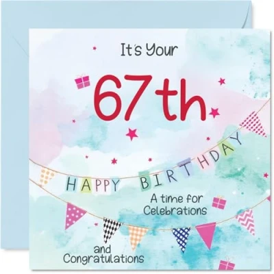 67th Birthday Cards for Men Party Bunting Happy Card 67 Year Old Man Grandad Brother Cousin Uncle, 145mm Bday Greeting