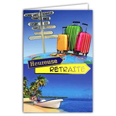 68 1048 B RET Retirement Leaving Card with Envelope Good Continuation Boat Island Paradise Sea Exotic Tropical Travel Suitcases Tour of The World Sign Directions Holiday Rest Relaxation Leisure AFIE