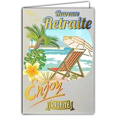 68 1208 Happy Retreat Card Gold Enjoy Sunbed Beach Sand Sea Palm Trees Flowers Sun Rest Made in France