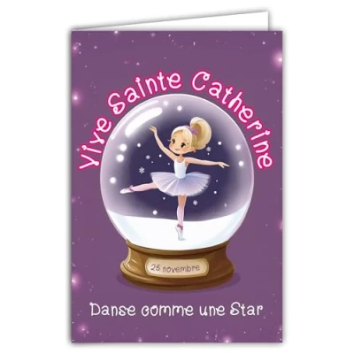 68 1348 Card Vive Sainte Catherine 25 November Wish a Happy Party to Little Girl Dancer Star Classic Dance Ballet Snowball Tutu with White Envelope 12 x 17 cm