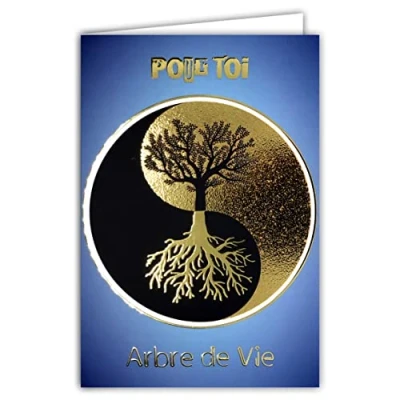 68 3002 Card for You Tree of Life Yin Yang Gold Shiny Lucky Charm Zen Wisdom Force Protection Peace Harmony Awareness Balance Perfect Party or Birthday with AFIE Envelope