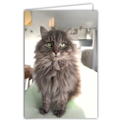 Practical format: double-sided greeting card of 11.5 x 17 cm closed (23 x 17 cm open), delivered with a matching white envelope ELEGANT DESIGN: Artistic photography of a grey cat with green eyes on a light background, capturing all the feline majesty PREMIUM QUALITY: High resolution print on high-quality paper with pristine white interior for your personal messages FRENCH MANUFACTURING: Creation and production carried out in France, ensuring a careful finish and high quality standards MODERN STYLE: Contemporary design suitable for all occasions, combining photographic elegance and refined simplicity