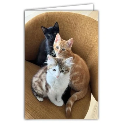 68 4025 Photo Card with 3 Cats Cute Animals Cocooning Rest Closed Format 17 x 11.5 cm White Interior to Write Your Message Comes an Envelope Creation and Made in France