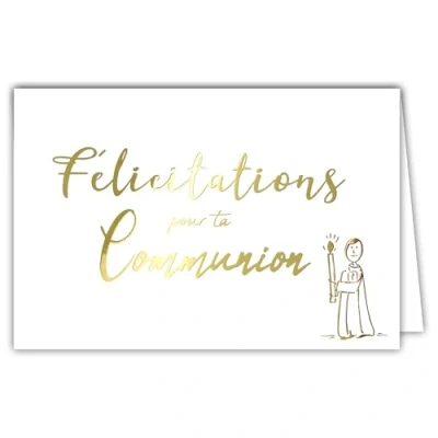68 6009 Congratulations Card for Your Communion Boy Girl Text Glossy Gold with White Envelope Size 12 x 17.5 cm Small Large Solemn Profession of Faith Made in France