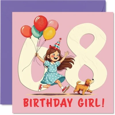 68th Birthday Cards for Women Balloon Girl Happy Card 68 Year Old Woman Auntie Neighbour Sister Nanny, 145mm Bday Greeting