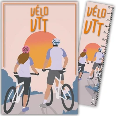 69 1027 Sporty Mountain Bike Cycling Card for Men and Women Sun with Bookmark/Ruler 15 cm in Paper White Envelope Size 12 x 17.5 Birthday or Party Gift Made France
