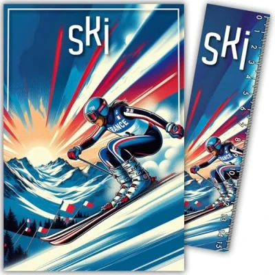69 1031 Downhill Ski Card Sports Winter Skiing With Bookmark/Ruler of 15 cm Paper and White Envelope Size 12 x 17.5 Birthday or Party Gift Made in France