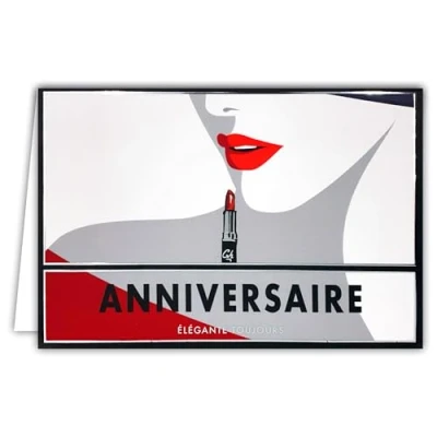 ELEGANT BIRTHDAY CARD: Sophisticated design featuring a chic woman with shiny silver lipstick and "ELEGANT ANNIVERSARY ALWAYS" message to celebrate with glamour and refinement GENEROUS SIZE: 12 x 17.5cm size provides ample space to personalize your warmest birthday wishes and express your sincere feelings LUXURIOUS FINISHES: Luxury collection with shiny silver gilding and premium paper for a sophisticated and glamorous touch that will impress the recipient ENVELOPE INCLUDED: Comes with a matching white envelope for a neat and complete presentation, ready to give for that memorable special occasion Made in France. High quality card created, printed and made in France with premium materials guaranteeing exceptional craftsmanship