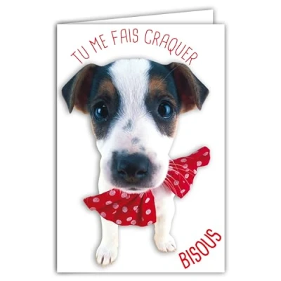69 6219 Card Tu me craque Humorous Message with Illustrated Envelope 17.5 x 12 cm Funny Dog Fancy Dress a Bow Tie Weight Design Made in France