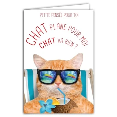 69 6221 Card Small Thought for You Humorous Message with Illustrated Envelope Format 17.5 x 12 cm Cat Goes Me Lounger Cool Relax Funny Creation, Made in France