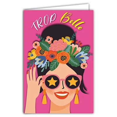 69 8053 Card Tu es Trop Belle Girlfriend for Birthday Friend Sister Cousin or Mother's Day Mum Flower Crown Bun Illustration with Envelope Format 12 x 17.5 cm Paper 300 g