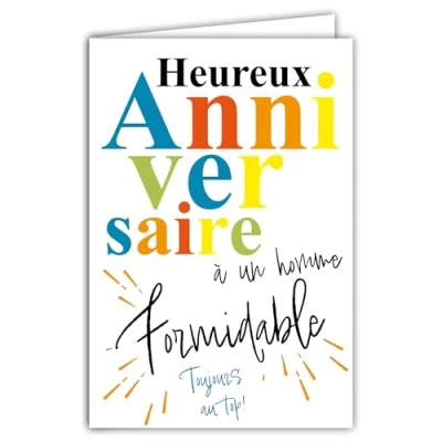 69 8119 Happy Birthday Card with Envelope 12 x 17.5 cm Large White Interior Text for Writing Real Neon Inks Created and Made in France