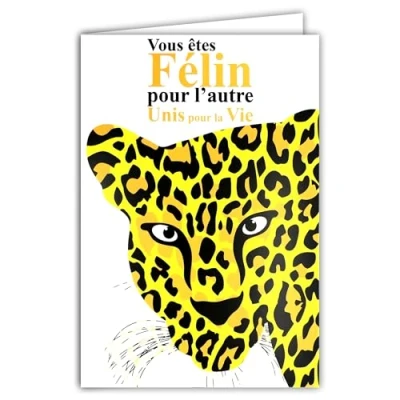 69 8138 Neon Card Congratulations Union PACS Wedding You Are Feline for the Other Couple United Life Leopard With Envelope 12 x 17.5 cm White Interior Fluorescent Inks Created and Made in