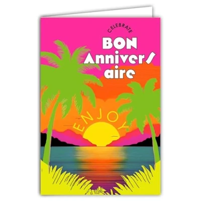 69 8156 Happy Birthday Postcard Celebrate Enjoy the Sun under Palm Trees Beach Sea Ocean Lazy with White Envelope 12 x 17.5 cm Made in France