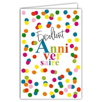69 8168 Fluorescent Card Excellent Birthday Confetti Multi Coloured Bright Colours of the Rainbow Pop Art with White Envelope 12 x 17.5 cm Made in France
