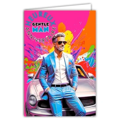 69 8172 Happy Birthday Card for Gentleman Man Elegant Chic Car Collection Pop Art Street with White Envelope 12 x 17.5 cm Made in France
