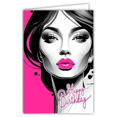 69 8173 Happy Birthday Card for Young Girl Woman Elegant Black and White Face Lipstick Pop Art with Envelope 12 x 17.5 cm Made in France