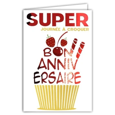 69 9017 Super Good Birthday Card Glossy Red + Envelope 12 x 17.5 cm Cupcake Shape Pastry Strawberry Cherry Lovely Day Chewable for Gourmet