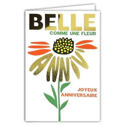 69 9018 Happy Birthday Card + Envelope 12 x 17.5 cm Beautiful as a Flower Word Gold Shiny Letters in the Shape of Sunflower Petals for Girl and Woman Creation Print Made France