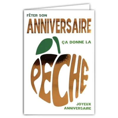 69 9021 Happy Birthday Card Fruity Have Peach Bright Copper Orange + Envelope 12 x 17.5 cm Word in the Shape of a Summer Fruit from Orchard Wish Good Health Creation Made France