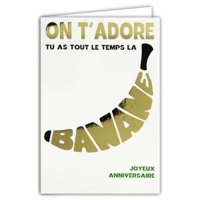 69 9023 Happy Birthday Card Fruity Have the Banana Bright Golden Yellow + Envelope 12 x 17.5 cm We Love You Smile Word in Shape of Exotic Tropical Fruit Design Print Made France