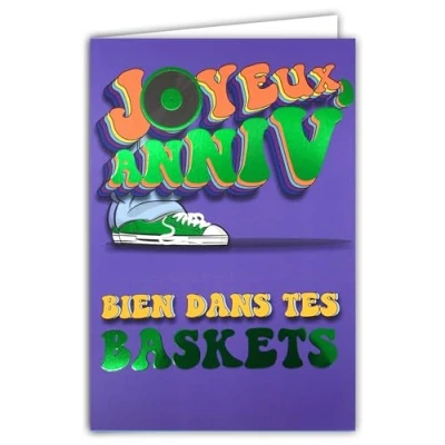 69 9026 Happy Birthday Card Well in Your Sneakers + Envelope 12 x 17.5 cm Vinyl Record Vintage Music 1960s Sixties Words Letters Glossy Green Creation Print Made France
