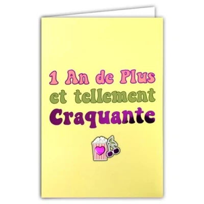 69 9030 1 Year Older Birthday Card for Beautiful Pretty Young Girl Woman Crunchy Fuchsia Pink Shiny Popcorn Crispy Cherries Heart + Envelope 12 x 17.5 cm Creation Print Made in France