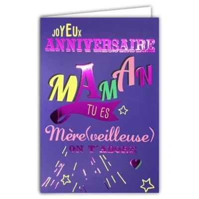 69 9035 Happy Birthday Card for Mum and Mother Wonderful On T'adore Text Words Letters in Shiny Fuchsia Pink + Envelope 12 x 17.5 cm White Interior Creation Print Made France