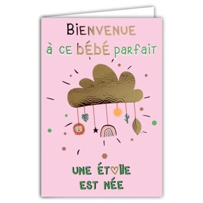 69 9042 Congratulations to Parents Card for Birth or Adoption Little Girl Welcome This Perfect Baby Rainbow Cloud Shiny Gold + Envelope 12 x 17.5 cm Creation Print Made in France