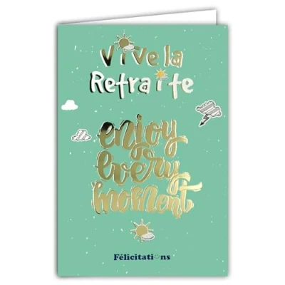 69 9049 Card Vive la Retirement Enjoy Every Moment Congratulations Text in Shiny Gold + Envelope 12 x 17.5 cm the Sun Good Continuation Design Print Made France