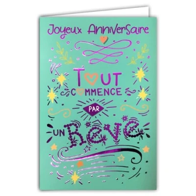 69 9054 Happy Birthday Card Everything Starts with a Dream in Colours Secret of Happiness Text Fuchsia Pink Shiny Stars Hearts + Envelope 12 x 17.5 cm Creation Print Made France
