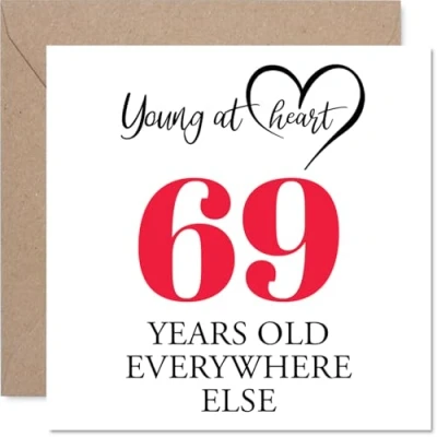 69th Birthday Cards for Men Women Young at Heart Happy Card 69 Year Old Man Woman Sister Neighbour Uncle Grandma, 145mm Bday Greeting