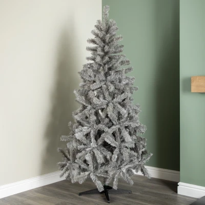 Make a festive statement with year with this 6ft Colorado Grey Spruce Christmas Tree, a beautifully designed artificial tree that combines modern colour tones with a realistic, natural shape. Perfect for both contemporary and traditional interiors, this Christmas tree is a durable and stylish choice that will bring festive charm to your home year after year.. At 6ft tall, the Colorado Grey Spruce Christmas Tree features high-quality PVC wrapped branches, carefully crafted to replicate the soft, silvery green hues of a real spruce. With a generous 483 tip count, the tree offers a full and balanced appearance, providing plenty of space to decorate with lights, baubles and garlands.. Designed with convenience in mind, the tree offers quick and easy assembly, allowing you to set up your Christmas display with minimal effort. It is supplied with a sturdy 55cm plastic stand diameter, ensuring excellent stability throughout the festive season.. Please note; the branches will need to be rearranged / fluffed to achieve the appearance in our product images.. Suitable for indoor use only.. Product Specifications. Height: 6ft (180cm) Diameter: 90cm. Stand Diameter: 55cm. Tip Count: 483