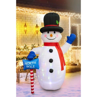 6ft Inflatable Hand Waving Snowman with North Pole Sign Board Pre Lit Mains Powered Multicolour LED Lights Christmas Props Outdoor Garden Decoration