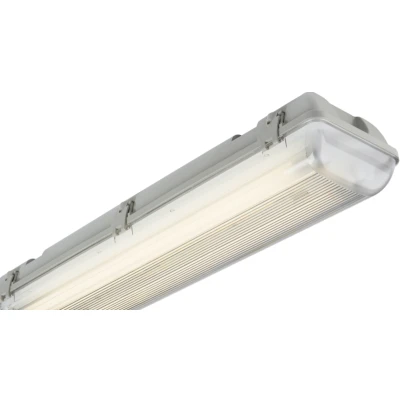 230V IP65 2x70W 6ft Twin High Frequency Non-Corrosive Fluorescent Fitting with Emergency. - Brackets for surface mounting - 3 hour emergency - Supplied with 14 x fixing clips - Polycarbonate base and diffuser - Push-fit terminals Compatible with 2x70W 6ft T8 lamp (not supplied).