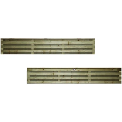 General description The 6ft x 1ft ROMAD Double Horizontal Venetian Slatted Fence Panel is a stylish and modern addition to any garden. This double-slatted design features horizontal laths mounted on both the front and back, providing full privacy while allowing light and air to flow through. The panels are suitable for boundary fencing, screening, or partitioning, making them versatile for various outdoor applications. Technical specifications Width: 6ft (183cm) Optional Heights: 1ft (30cm), 2ft (60cm), 3ft (90cm), 4ft (120cm), 5ft (150cm), 6ft (180cm) Slat dimensions: Approximately 47mm x 14mm Void between front and back slats: 14mm Gap between horizontal slats: 20mm to 30mm Other information Manufactured from rough-sawn timber Pressure treated using Tanalith E Recommended not to paint for 6-8 weeks to allow treatment to dry Timber may contract and expand in different weather conditions