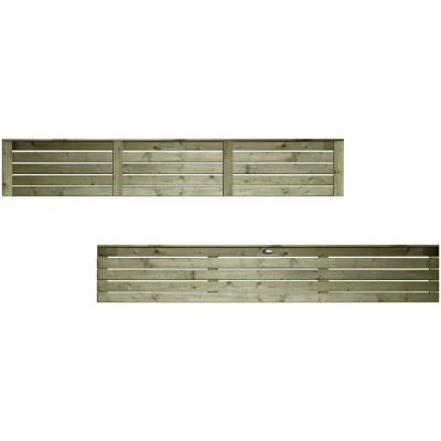 General description The 6ft x 1ft ROMA Single Horizontal Venetian Slatted Trellis Panel is a stylish and modern addition to any garden. This contemporary fence panel features horizontal slats that create a beautiful design while allowing light and breeze to pass through, providing a level of privacy without completely blocking the view. The panel is made from rough-sawn timber and is pressure treated for durability, making it suitable for various outdoor applications. Technical specifications Width: 6ft (183cm) Height options: 1ft (30cm), 2ft (60cm), 3ft (90cm), 4ft (120cm), 5ft (150cm), 6ft (180cm) Horizontal slat dimensions: approximately 47mm x 14mm Vertical slat dimensions: approximately 47mm x 14mm Gap between slats: approximately 5mm to 10mm Installation Recommended to allow the treatment to dry for 6-8 weeks before painting. Timber may contract and expand in different weather conditions, so some dimensional variation should be expected. Usage This panel can be used as a fence